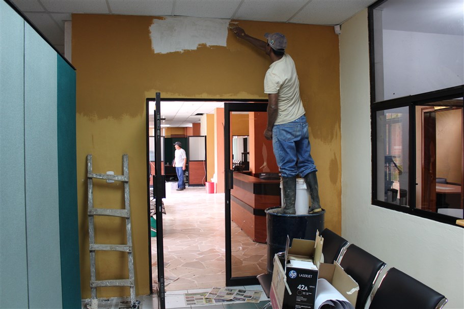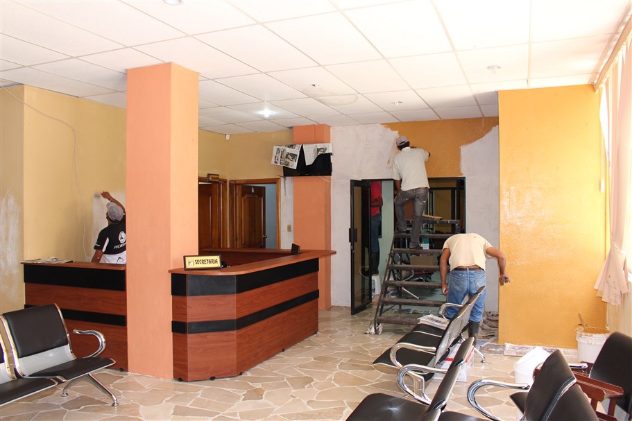 El pintado de las paredes internasCabe recalcar que la atención al público en ningún momento ha sido suspendida, los diferentes departamentos trabajan de manera normal, para no afectar al usuario en las gestiones pertinentes.